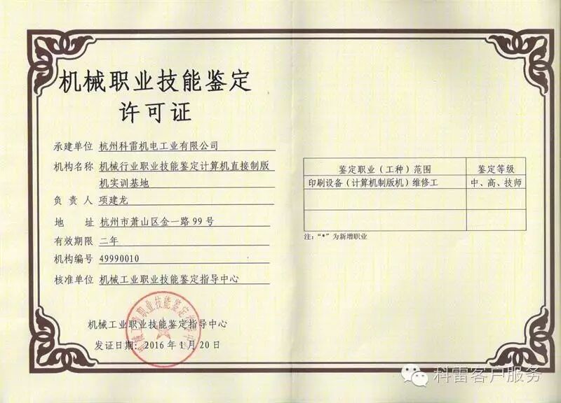 对考试成绩合格者,由国家机械工业职业技能鉴定指导中心或授权国家机械工业职业技能鉴定印刷及设备器材行业分中心按照统一填写格式和编号,颁发国家《职业资格证书》,同时报国家人力资源和社会保障部备案。