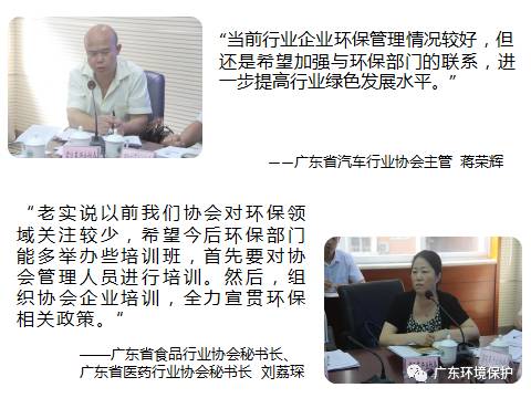 黄文沐指出,环境保护与人民群众息息相关,污染治理需要各行各业共同努力。广东省第十二次党代会报告指出,大力推动绿色发展,实现美丽与发展共赢,加快推动工业绿色化发展。工业在较长时期仍是我省主要污染来源,要以绿色为标尺引领产业加快转型升级,从源头上减少污染排放;大力发展绿色制造,重点提高有色、化工、建材等行业绿色制造水平;对标国际先进节能环保标准,开展工业污染源全面达标排放治理和绿色化改造。希望各行业协会进一步增强责任意识,大力发挥行业协会在环境保护工作中的积极作用,通过协会引导企业提升环保意识、树立环保自觉、培养环保自律,强化企业落实环保责任的内生动力,提高企业环保治理效果,共同为改善我省环境做出贡献。